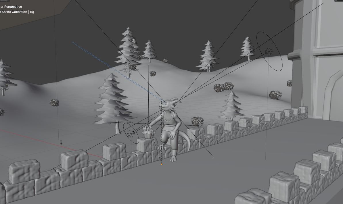 Short jumping animation. Background assets (the building, the foliage, and the textures for the castle wall) were made by Quaternius on itch.io. The HDRI used here for the lighting came from Polyhaven.